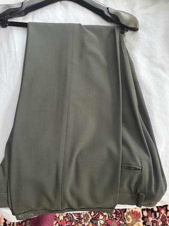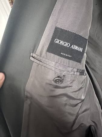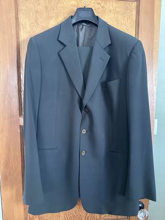 A Giogio Armani, two piece, two button, green, men's business suit, jacket is 42", waist is 34", and inseam is 30". Vintage from the 90s. Made in Italy.