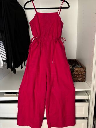Cute pink linen jumpsuit. Brand new without tags. Bought it for an event but never wore it. Size XS.