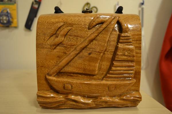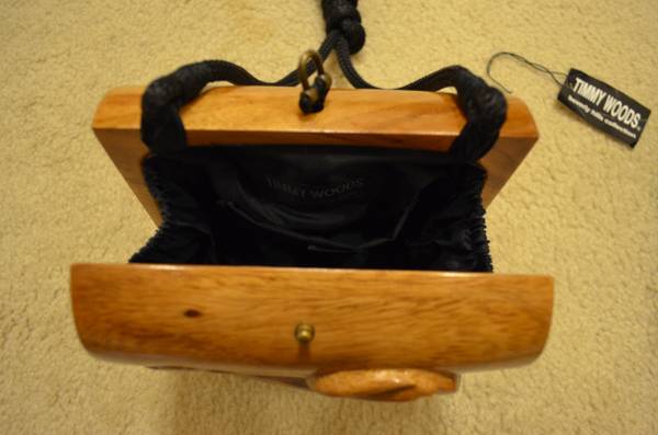 Timmy Woods Shoulder Bag Beverly Hills Collection Crossbody Golden Brown Hand Carved Acacia Wood Black Strap Dual Inner Pockets $99 {evening bag fashion handbag luxury purse tote bag vintage wallet...