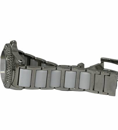 Description: WOMEN'S WRISTWATCH: FOLLI FOLLIE. For sale, we have this white women's Folli Follie watch in excellent condition. The band shows some hairline scratches. The bezel has clear stones all around. This watch fits a 6" wrist. The case measures 31mm and lug measures 15.8mm. Please see the photos for more details. Thank you.