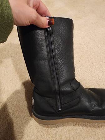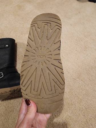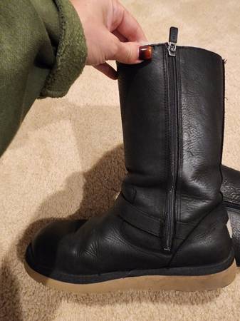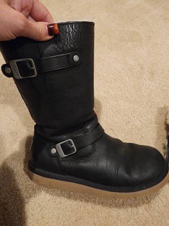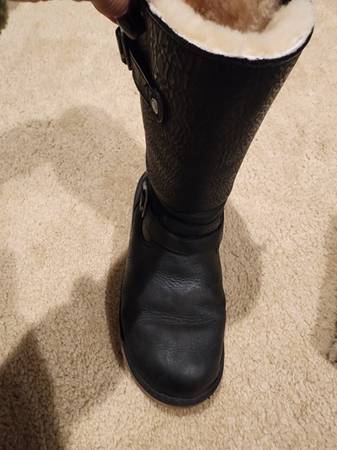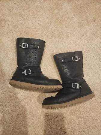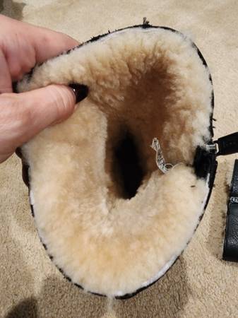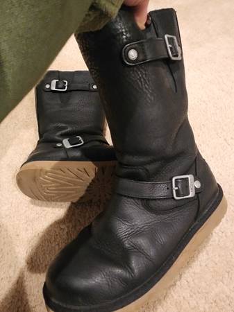 Black Ugg Boots with Buckles and Size Zipper US Size 6. Round toe and shearling lined. Minimal wear and in great shape.