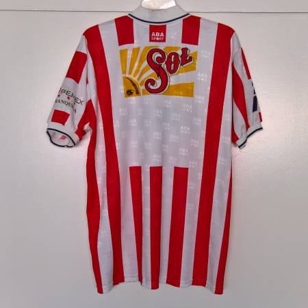 If ad is up it is still available. Used - (Genuine/Authentic) Vintage ABA Sport Chivas Club Deportivo Guadalajara Mexico 1996/97 Home Soccer Championship Jersey. Size XL. It has some slight red marks by the left armpit which look to be from a marker (see pics) but otherwise in really great shape. This is a rare collector's piece.