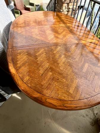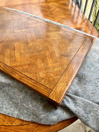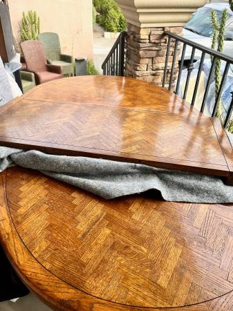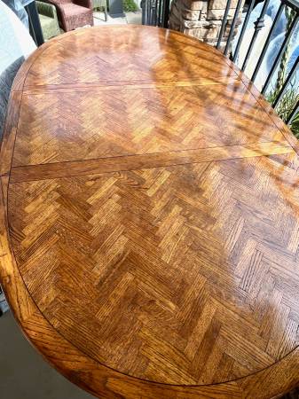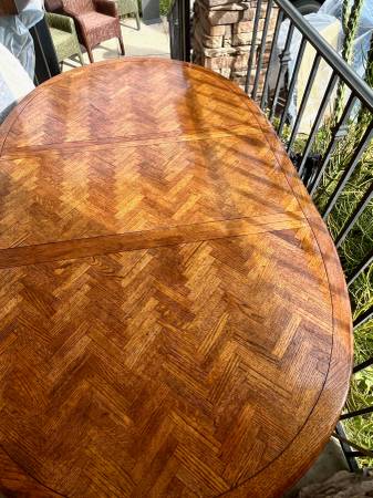 Attractive, expandable, classy oval dining table in parquet design that’s 42” wide x 30” tall x 52” long and expands up to 88” long with two 18” extension boards. (Photos show basic size of table and also with one extension board inserted.) Solid and well made. An ideal dining table for your Thanksgiving and holiday meals! $375. Can deliver nearby for an extra fee. Mid City LA near Fairfax and Pico Streets, 90019. Contact outdoorslew at gee male or call 310-seven seven zero-7962.