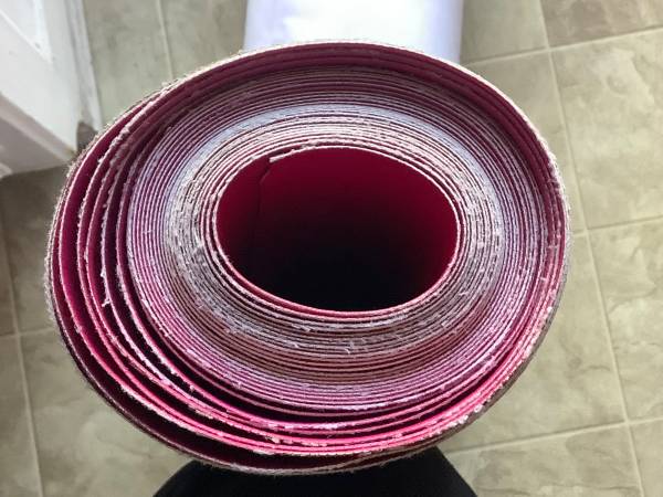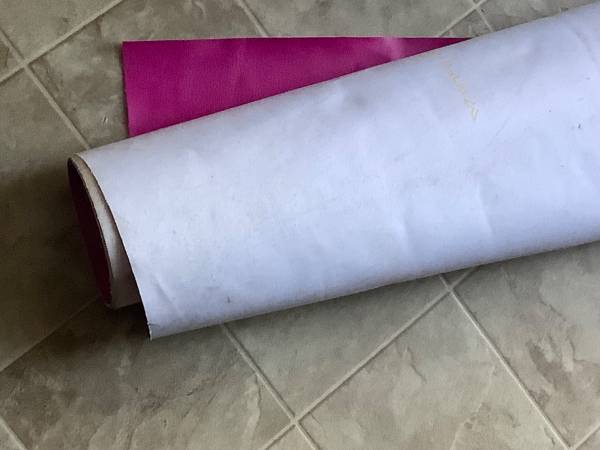 8 yards long, 4 1/2 feet wide, hot pink upholstery vinyl. Pictures are not color enhanced-it’s really bright! Reverse side is white. Rolled up, so minimal creasing.Brand new! Local pick up only. Smoke free / pet free home.