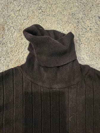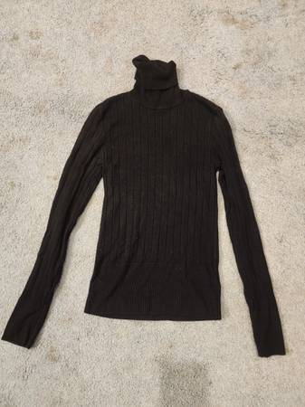 Like New Black Tezenis Ribbed Turtleneck Size Small. The fabric and size tag was cut from the inside but the material is thick and I am a size 4. Purchased for $50 in Europe. No flaws, rips, holes, or stains. Minor piling in one spot but it is difficult to see it unless you look hard. I took photos of this spot. Perfect to pair with a skirt or high waisted jeans. Measures 22 in long x 12 in width. From a smoke free home.