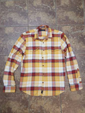 Like New Men's Plaid Classic Fit Lucky Brand Button Down Size M. No flaws, rips, or stains. Features two chest pockets with buttons as well as buttons on the cuffs. The sleeves can be rolled up or worn down and the shirt can be worn open or closed. Colors: white, yellow, orange, and red. Measures in 28.5 long x 19 in across the chest when laying flat. Sleeve measures 26 in long. 100% cotton. Paid $45 for it. Comes with extra buttons.