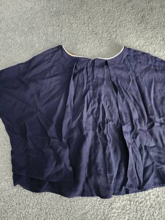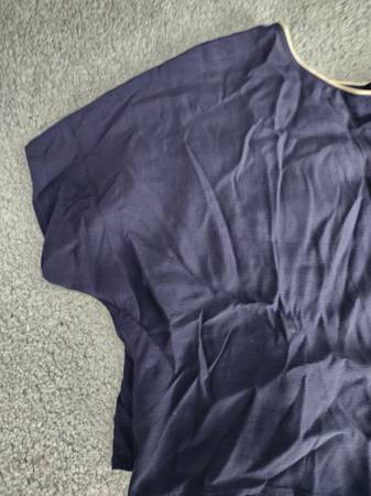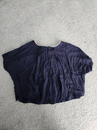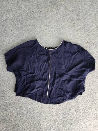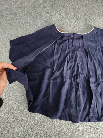 Like New Navy Zara Short Sleeve Crop Blouse Size XS. No flaws, rips, or stains. Just needs to be ironed. Has a zipper in the back. Measures 20 in long x 23 in wide.