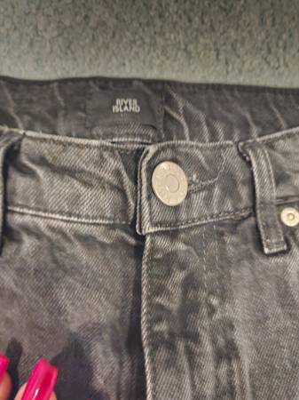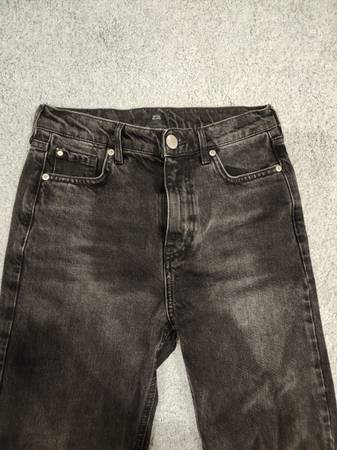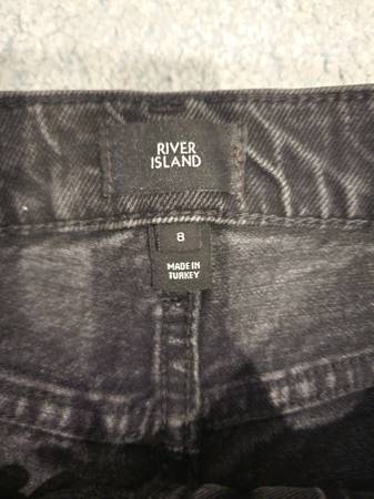 Like New River Island Black Washed Jeans Size 8. Features zipper and button closure, belt loops, and two back pockets. Style: straight leg. Measures 37 in long x 13.5 in wide x 11 in inseam. No...