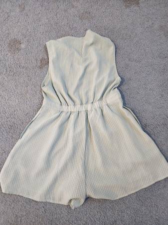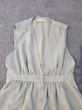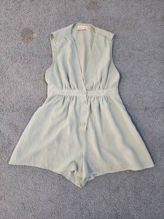 Like New Sage Green Urban Outfitters Romper Size Small. No flaws, rips, or stains. Fully lined underneath and has 4 buttons down the front. Measures 13 in across when laying flat and 29 in long.