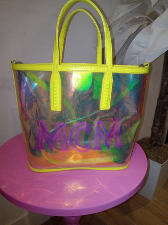Great condition - used $500 o.b.o - black MCM bucket bag medium size $300 o.b.o - pink / green (neon) transparent MCM tote bag medium size