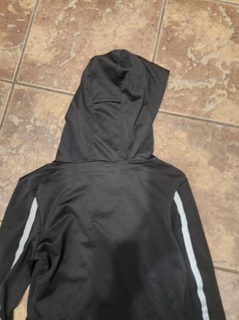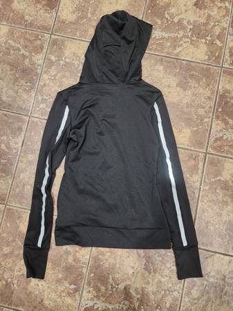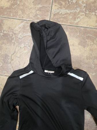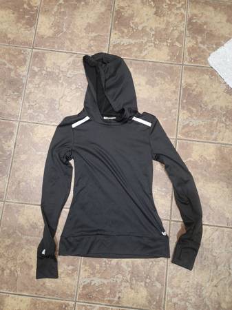NWOT Forever 21 Black Long Sleeve Running Shirt with Hood Size Small. Features fleece lining to keep you warm. New, never used, no flaws. The top has holes to put your thumbs, reflective details on the sleeves, and a hole in the hood to loop your ponytail through. Measures 24 in long x 14 in across the chest.