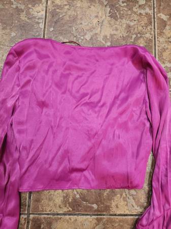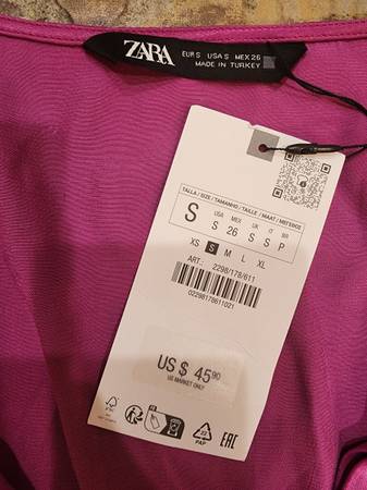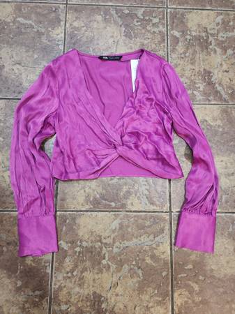 NWT Zara Fuchsia Crop Blouse Size Small. Never worn an completely brand new. No flaws. Runs big which is why I am selling it. Has a size zipper and can be worn with any high waisted clothes. Purchased for $55. Measures 16.5 in long and 15 in across when laying flat. Super pretty color and soft material.