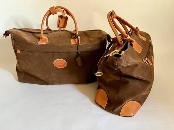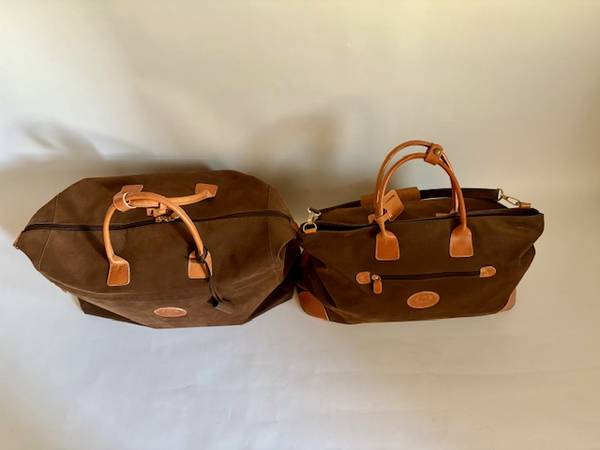Pair of Luxury Brown Suede Duffle Bags – Classic Heritage Travel Style
