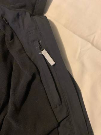 Retractable hood, also has inside zipper pocket left chest. Cuffs can be Velcroed up.