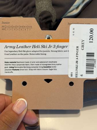 Hestra's Legendary Leather Heli Ski glove adapted for Juniors. Strong polyamide weave on the back and Army Leather on the palm.