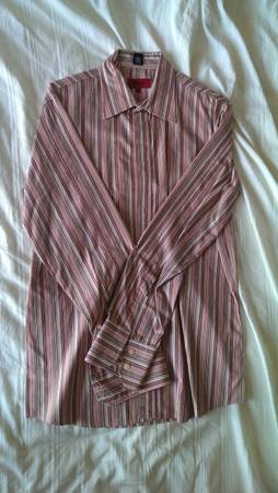 Hugo Boss brand shirt that has pink, red, and brown stripes - Size Medium