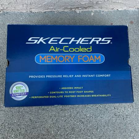 * Heel panel overlay with SKECHERS logo and top pull on loop