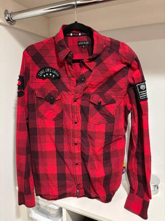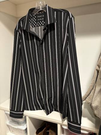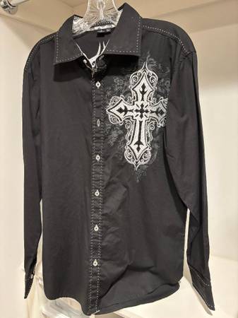 I call these rock and roll shirts. My performing days are over and it's time to clean the closet. All items are size “large” - I'm 6-0” and 190 lbs and they fit me fine. These items have been seldom worn and very well cared for. I'd call them like new condition.