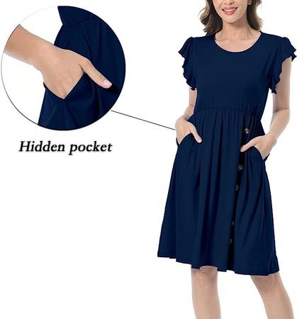 π Design: Loose fit design ,Pleated waistline, tunic dress, knee length, both sides have nice hidden pockets. The casual and stylish design is easy to match with your different shoes.