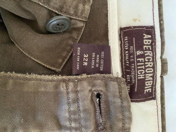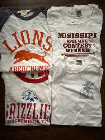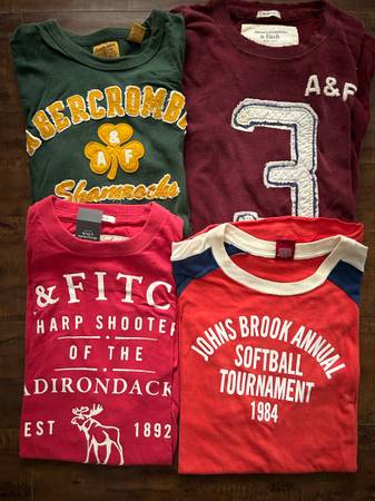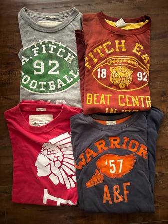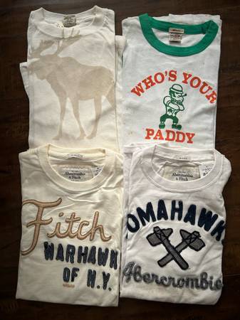 I also have a lot of A&F button down shirts, sweaters and pants with either the "A&F" and moose logos for sale at $50 each. The pants range from size 30 to size 34. The button down shirts and sweaters vary between size S, M and L but mostly S and M. Also collector's items.