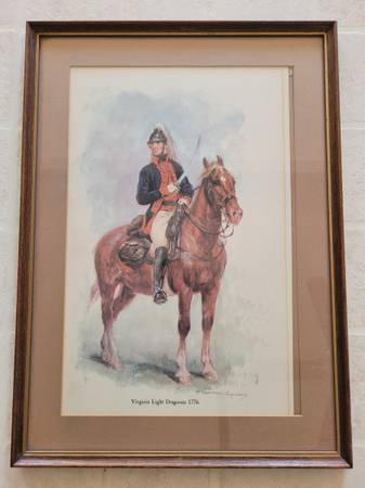 Virginia Light Dragoons 1776 by Raymond Desvarreux Larpenteur. Original Painting Size 10.5” x 16" Frame Size 13.75” x 19”. $125