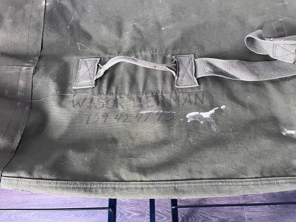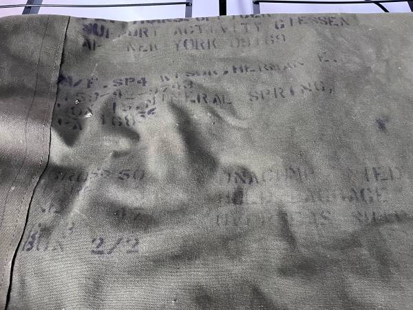 Vintage 50s US Army Military OD Green Canvas Duffle Bag w/ Stencil Color: OD Green Please let me know If you have any questions. Price: $20 Pick up and Cash only You can chat or text me (Six2six)...