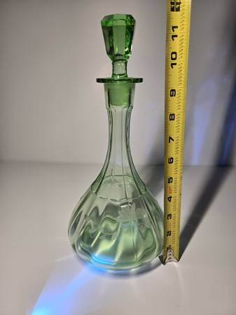 Pictures do not do this justice please see linked video... https://youtube.com/shorts/xfY_CA-JiFA?si=mWXjkPKy4DpAzPtf This beautiful vintage uranium glass decanter would be a welcome addition to...