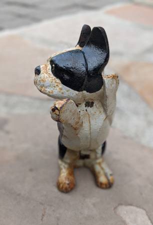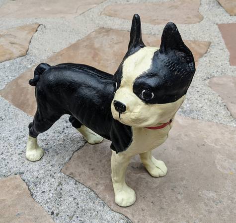 One hand painted, one vintage, both cast iron, Boston Terrier door-stop book-end figurines are available for sale. Yes, now there are 2 companions...with such incredible individual canine character!...