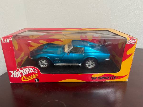 Hot Wheels Classic Blue ‘69 Corvette Limited condition, unopened They go for more but the case is not in good condition for this one, but again it is still unopened.