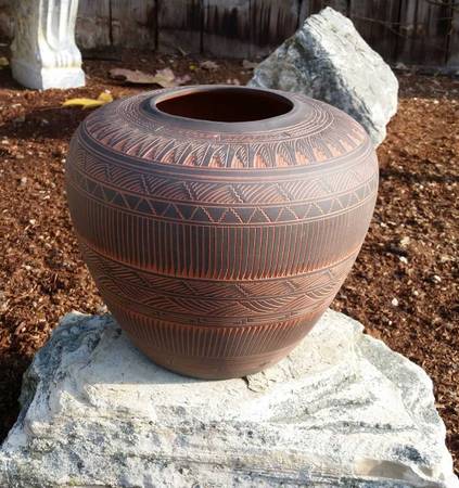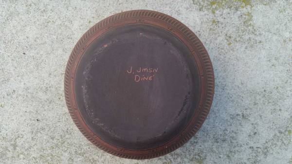 Beautiful Hand Made Navajo, Dine', Etched Pottery. Two Pieces. Sold together or separately. Signed Jmsn Dine' by the Native American Artist. Purchased in New Mexico in the 1980's. These have been kept and displayed indoors at all times with the exception of taking the pictures for this ad. Both are in excellent condition with no chips, cracks or fading.