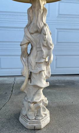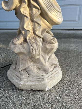 This is a vintage midcentury MCM Chalkware Plaster QuanYin GuanYin lamp and New Age statue figure. Needs a little dusting and light cleaning. Look closely for photos for a few small dings at the base. Lamp works and lampshade is included. About 4.5 feet tall without the lampshade. Delivery available in Los Angeles. $80 or best offer.