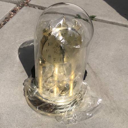 The VTG Anniversary Clock Concordia Old-World Craftsmanship Styling is a vintage-inspired clock featuring an oval shape, brass finish, and a pyrex glass dome. Made in Germany, this analog clock has a quartz movement and a 400-day power reserve. The clock exudes a retro style with a gold color and vintage design elements, making it a perfect decorative collectible for any room in the house. With a size of 9x6 inches, this assuredly unique clock is a timeless piece that adds character to any space.