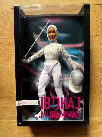 Ibtihaj is honored as a Barbie "Shero," a woman who has broken boundaries to inspire the next generation of girls. Competing as a saber fencer on the U.S. fencing team, she became the first female Muslim-American fencing champion to wear a hijab.The Ibtihaj Muhammad Barbie doll is sculpted to her likeness, fully posable and is dressed in her fencing uniform, complete with hijab, sabre and mask.