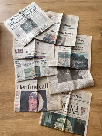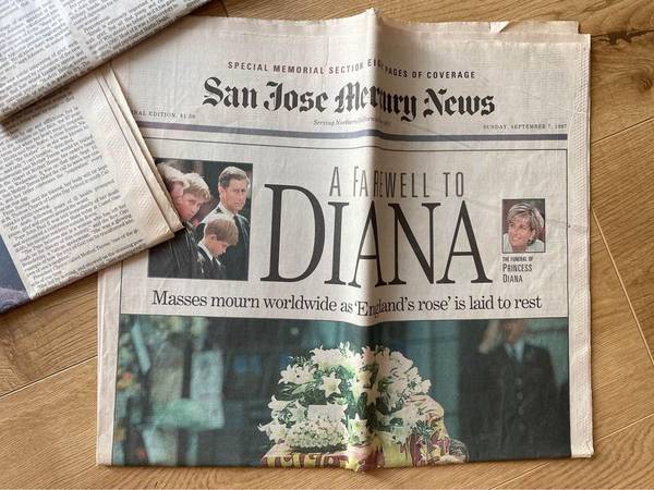 For fans of Royal history, 8 front pages of the San Jose Mercury newspaper documenting Princess Diana Death - August 31, 1997 - September 7, 1997.