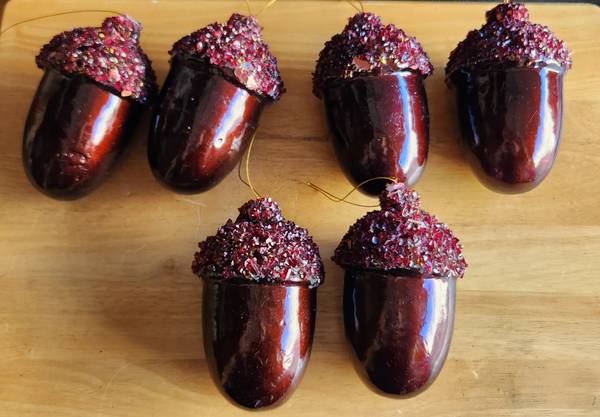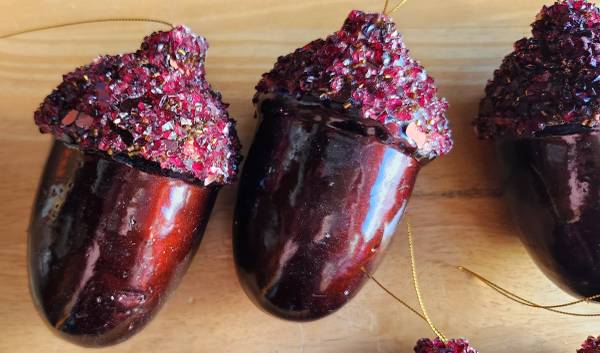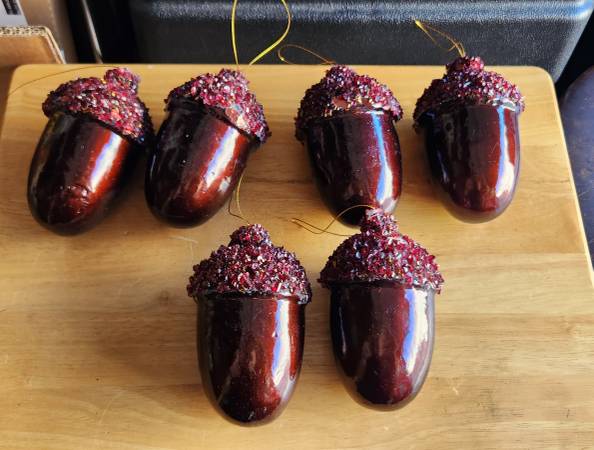 Beautiful, beaded acorn ornaments from Pottery Barn. Excellent condition and only used as decorations at work. Newly retired, they would great for any Fall / Thanksgiving decor. The body is dark...