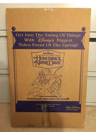 Vintage Disney Store Display Cardboard Standee for the classic "The Hunchback of Notre Dame". Standee's are used for visual advertising/ promotions. Purchased yrs ago from former Disney animator. Like new, only opened to show contents. Great for any Disneyana collector or unique holiday gift! Ask $150 or obo