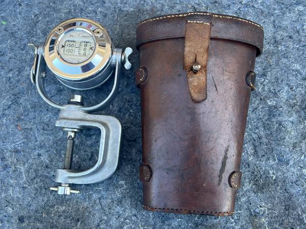 THIS IS A VERY EARLY ONE IN THE ORIGINAL LEATHER CASE. THE IDEA IS THAT THESE USED KINETIC ENERGY TO TEST THE CARS BRAKES TO SEE HOW FAST THE CAR STOPS. THIS ONE IS IN FINE CONDITION.