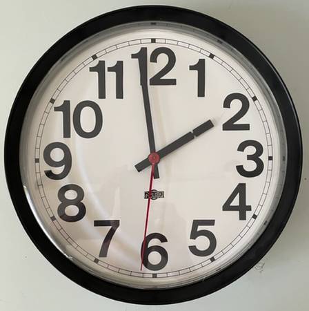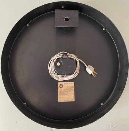 Peter Pepper Products electric wall clock - crisp like a 1967 Eldorado. 13.5" diameter. 3.5" deep. Black bezel. Has renowned Lanshire 105v-125v movement, sweep second hand. Keeps excellent time. Can...