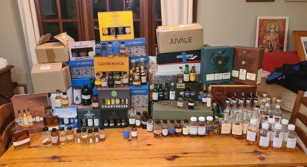 I also have a huge liquor collection consisting of about 150 unopened and opened bottles as well as over 700 1-4oz samples and minis of mid to high end Whisk(e)y (Bourbon, Scotch, Japanese, Irish, Kavalan and other World Whisky/Whiskey), Brandy (Cognac, Armagnac and other Eau-de-vie), Rum, Rhum, Liqueurs, Absinthe, Tequila, Mezcal, Gin and more, that I am also letting go of and have organized into a spreadsheet. I showed pics of some of that in another listing. Trading and buying samples was my favorite and most addictive part of the hobby. Lets you try things at a fraction of the cost of a bar, especially our local ones. Many pours that would never see offered in your favorite bars as well.