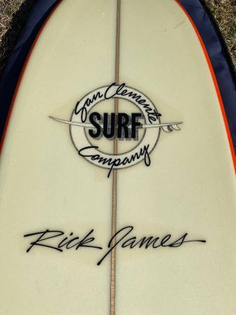 RICK JAMES SAN CLEMENTE SURF COMPANY. 9 FT LONG X 23" WIDE. BOARD IS IN GREAT SHAPE. CASH ONLY!!! THANKS FOR LOOKING!