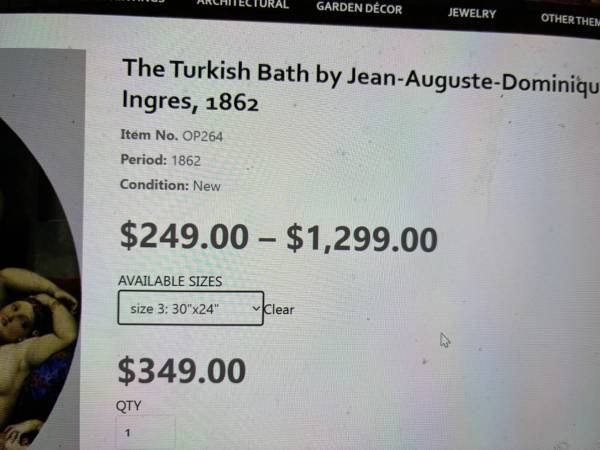 Professionally mounted reprint of famous 1862 painting which hangs in the Louvre Museum in Paris, France. Dimensions of frame are 27” x 27”.