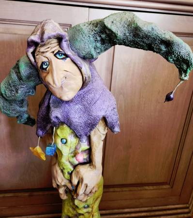 VINTAGE, WHIMSICAL, THE JOKER, BY STEVEN LEE SMELTZER, HIGH FIRE STONEWEAR, HANDCRAFTED SCULPTURE, FROM HAWAII. IT IS 32" TALL and WEIGHS 33 POUNDS.