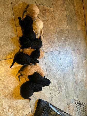 Looking to rehome golden doole puppies dob 10/18/2025 text or call for more information : Mom:all black. Dad:white end black