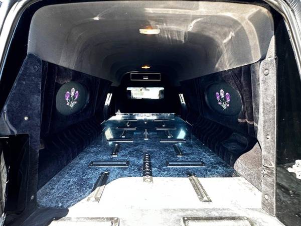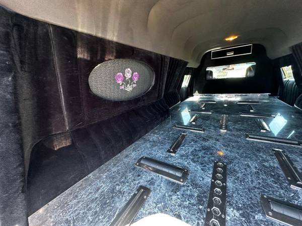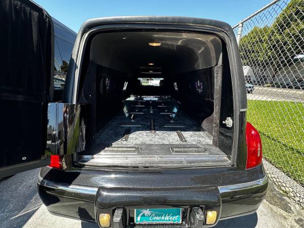 4.6L V6 Gas, Black Exterior, Black Leather Interior, Traditional Left Hand Hinge Door Opening, Canyon Black Floor, Church Truck Compartment, Half Vinyl Top, Name Plate Holders, Chrome Landau Bar, Motif Panel, Custom Drapes on Side Doors, Drip Rail Management System, 4-Speed Automatic Transmission, Rear Wheel Drive. Call For Pricing. Stock #10U607019