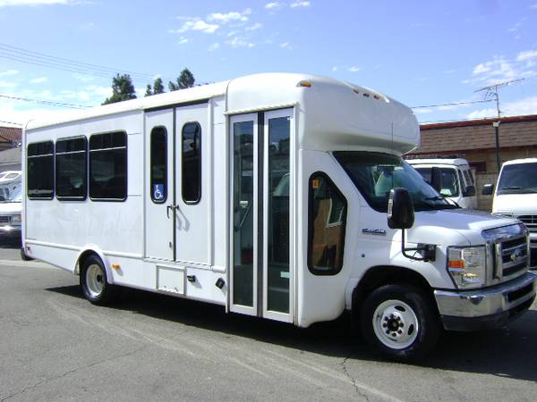 2014 Ford E450 20-Passenger Wheelchair Lift Shuttle Bus 1 Owner Government Owned & Maintained, ONLY 84,000 LOW MILES! Front & Rear Air Conditioning, Heavy Duty Handicap Wheel Chair Lift, Capacity for 2-Wheelchair Stations, Great for RV Camper Recreational Cargo Van, 14,500 LBS GVWR, Dually ***MINOR DECAL IMPRESSIONS ON EXTERIOR FROM CITY*** Tilt Wheel, Cruise Control, AM/FM Radio, LOW LWO MILES! ONLY 84,000 MILES! V10 6.8L Gas Engine and much more. Give us a call at 951 735-6269 or toll free at 1-877-826-7253