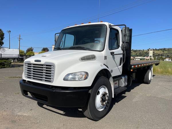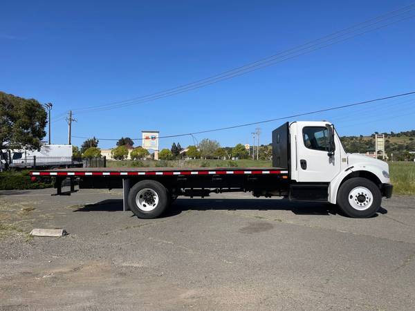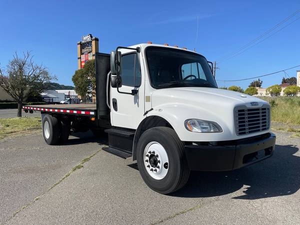 2018 FREIGHTLINER M2 22' FLATBED TRUCK, NON-CDL CUMMINS 6.7L ENGINE, ALLISON RDS PTO READY FLEET MAINTAINED WITH SERVICE RECORDS AIR RIDE, AIR BRAKES, 3 SEATER CAB FULLY CA CARB COMPLIANT, DPF WITH DEF NON-CDL 26k GVWR, ANYONE WITH A CLASS C LICENSE CAN DRIVE!Globe Truck Center Ask for: Ricky ☎ (707) 427-8782 4560 Central Way Fairfield, CA 94534