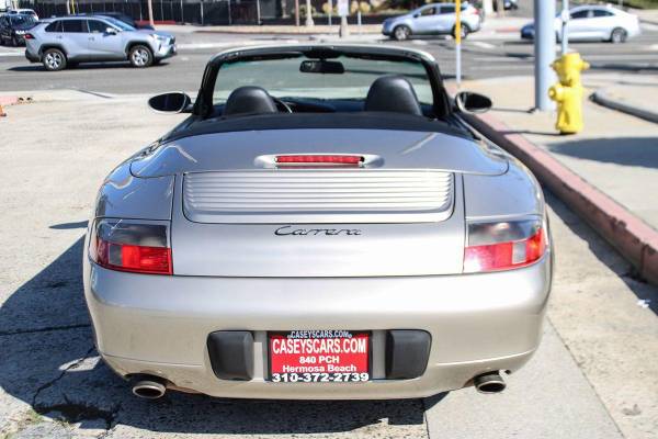***1 Owner Clean Carfax/Autocheck Certified***6 Speed Manual***Runs and drives great!***Recent Service Completed***Trade-In Special***Financing Available***Home Delivery Available***Solid driver condition 996.1 Carrera Cabriolet***1999 Porsche 911 Carrera Cabriolet, 3.4L 296 Horsepower Flat 6 Engine, 6 Speed Manual Transmission and more! See all details at www.caseyscars.com. Please call to check availability.All advertised prices exclude government fees and taxes, any finance charges, any dealer document preparation charge, and any emission testing charge. The price for listed vehicles as equipped does not include charges such as: License, Title, Registration Fees, State or Local Taxes, Smog Fees, or any upgrades installed by dealer such as but not limited to (luxury Tint, upgraded wheels package, Upgraded sound systems, etc..) . While we try to make sure that all prices posted here are accurate at all times, we cannot be responsible for typographical and other errors that may appear on the site. If the posted price for a vehicle or service is incorrect due to typographical or other error (e.g., data transmission), this dealership and their representatives are only responsible for the correct price, which we will endeavor to provide to you as soon as we become aware of the error. We make every effort to provide you the most accurate, up-to-the-minute information; however it is your responsibility to verify with the Dealer that all details listed are accurate. Vehicle images and descriptions posted on our website pages are the representations provided by our suppliers. Please note that actual vehicle may differ slightly from specifications and/or the pictures. The dealership makes no representations, expressed or implied, to any actual or prospective purchaser or owner of this vehicle as to the existence, ownership, accuracy, description or condition of the listed vehicle's equipment, accessories, price or any warranties. Any and all differences must be addressed prior to the sale of this vehicle. The dealership is not responsible for typographical, pricing, product information, advertising or shipping errors. Advertised prices and available quantities are subject to change without notice. In the event a vehicle is listed at an incorrect price due to typographical, photographic, or technical error or error in pricing information received from our suppliers, the dealership shall have the right to refuse or cancel any orders placed for vehicle listed at the incorrect price.
