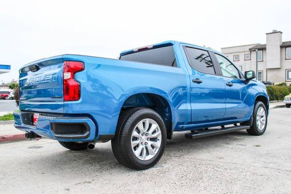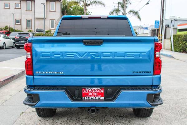 ***Clean title***Financing Available***Home Delivery Available***Extended Vehicle Service Contracts Available***Very clean 2022 Chevy Silverado 1500 Crew Cab Custom 2WD, Glacier Blue Metallic with Black Cloth Interior, 2.7L Turbo High Output 310 Horsepower Engine, 8 Speed Automatic Transmission and more! See all details at www.caseyscars.com. Please call to check availability.All advertised prices exclude government fees and taxes, any finance charges, any dealer document preparation charge, and any emission testing charge. The price for listed vehicles as equipped does not include charges such as: License, Title, Registration Fees, State or Local Taxes, Smog Fees, or any upgrades installed by dealer such as but not limited to (luxury Tint, upgraded wheels package, Upgraded sound systems, etc..) . While we try to make sure that all prices posted here are accurate at all times, we cannot be responsible for typographical and other errors that may appear on the site. If the posted price for a vehicle or service is incorrect due to typographical or other error (e.g., data transmission), this dealership and their representatives are only responsible for the correct price, which we will endeavor to provide to you as soon as we become aware of the error. We make every effort to provide you the most accurate, up-to-the-minute information; however it is your responsibility to verify with the Dealer that all details listed are accurate. Vehicle images and descriptions posted on our website pages are the representations provided by our suppliers. Please note that actual vehicle may differ slightly from specifications and/or the pictures. The dealership makes no representations, expressed or implied, to any actual or prospective purchaser or owner of this vehicle as to the existence, ownership, accuracy, description or condition of the listed vehicle's equipment, accessories, price or any warranties. Any and all differences must be addressed prior to the sale of this vehicle. The dealership is not responsible for typographical, pricing, product information, advertising or shipping errors. Advertised prices and available quantities are subject to change without notice. In the event a vehicle is listed at an incorrect price due to typographical, photographic, or technical error or error in pricing information received from our suppliers, the dealership shall have the right to refuse or cancel any orders placed for vehicle listed at the incorrect price.