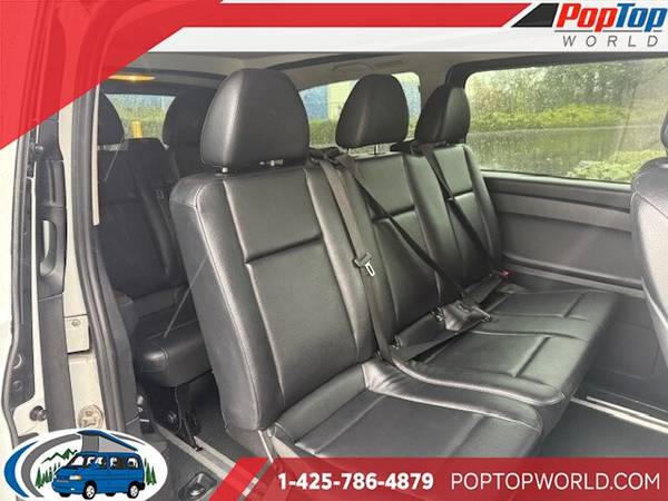 Why You'll Love It * Pop-Top Camper Roof: Mercedes-style quality conversion with sleeping platform, screened windows, and standing headroom. (Installed by Peace Vans in Seattle) * 8 foot Fiamma Awning installed - helps extend your camping space and covers you from rain and excessive sun. * Multi-Purpose Layout: Keep all eight seats for daily driving or remove the rear rows for a huge cargo area or cozy camper setup. * Compact Adventure Vehicle: Smaller than Sprinter vans but with plenty of power for mountain roads and long road trips. * Easy to Drive & Park: Feels like a luxury minivan, not a bulky RV. * Adventure-Ready: Perfect for road trips, national parks, or as a second vehicle that doubles as a weekend getaway rig.