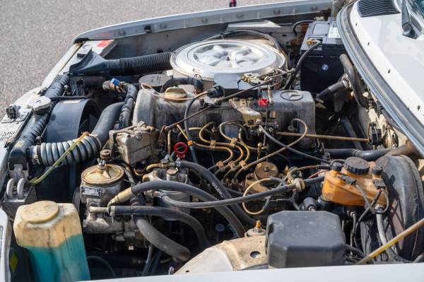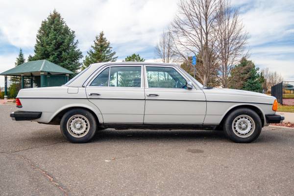 Up for auction, this 1982 Mercedes-Benz 240D is finished in Pastel Gray over blue MB-Tex and shows approximately 115k miles. It’s powered by a 2.4L OM616 diesel inline-four paired with a 4-speed manual transmission. The seller invested over $3,000 in recent mechanical work including engine mounts, driveshaft support and bearing, fuel hoses, A/C service, a starter, brake master cylinder replacement, and a valve adjustment with a new gasket. The car includes service records, a stamped booklet, a clean Carfax, and a clean Colorado title. It is located in Denver, Colorado, USA.
